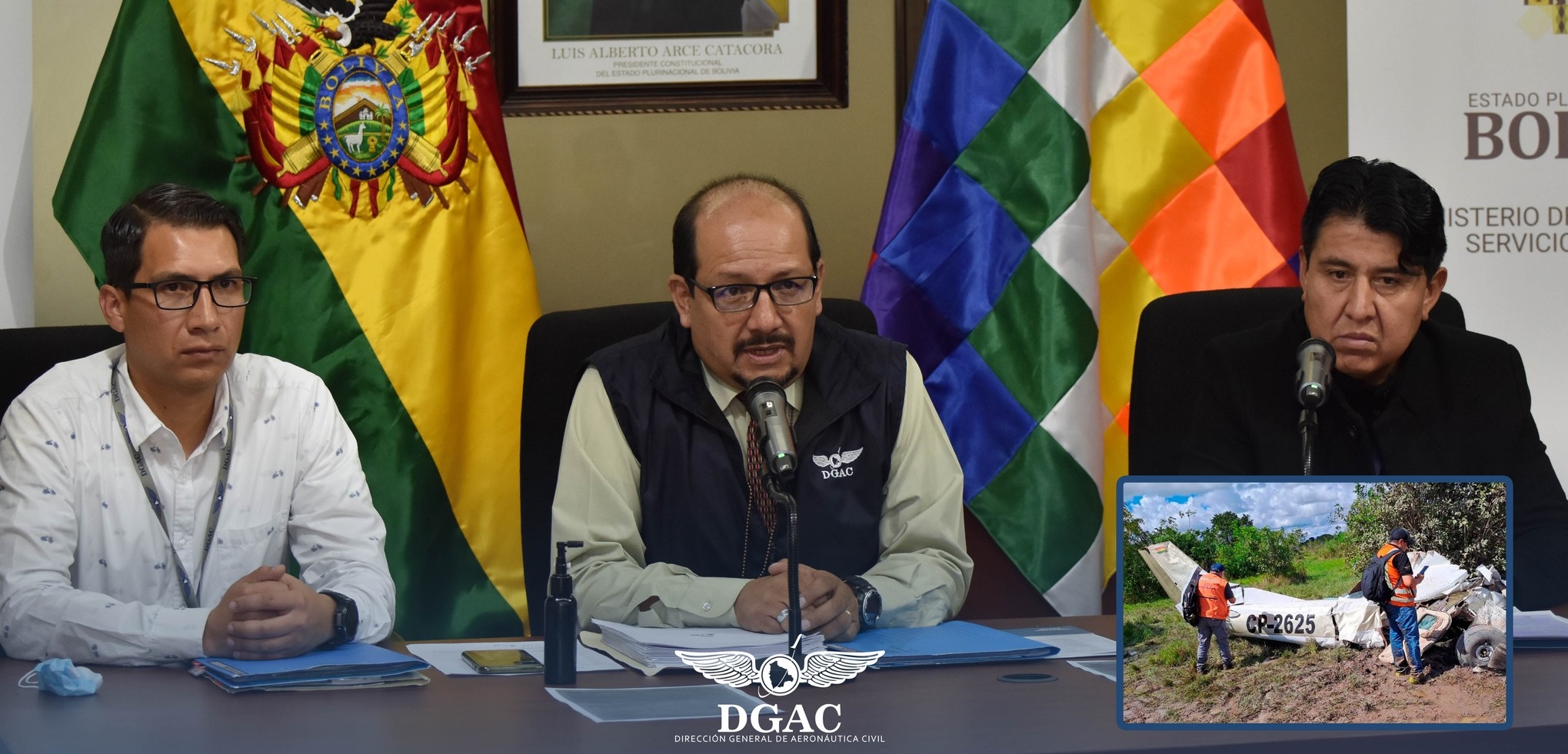 OBRAS INFORMA 28/04/2023.- La Dirección General de Aeronáutica Civil (DGAC) informó este jueves, en conferencia de prensa, que la Unidad de Investigación y Prevención de Accidentes e Incidentes (AIG) inició con las investigaciones para determinar las causas del accidente aéreo de la aeronave CP-2625 suscitado el miércoles, en Santa Ana de Yacuma, Beni.